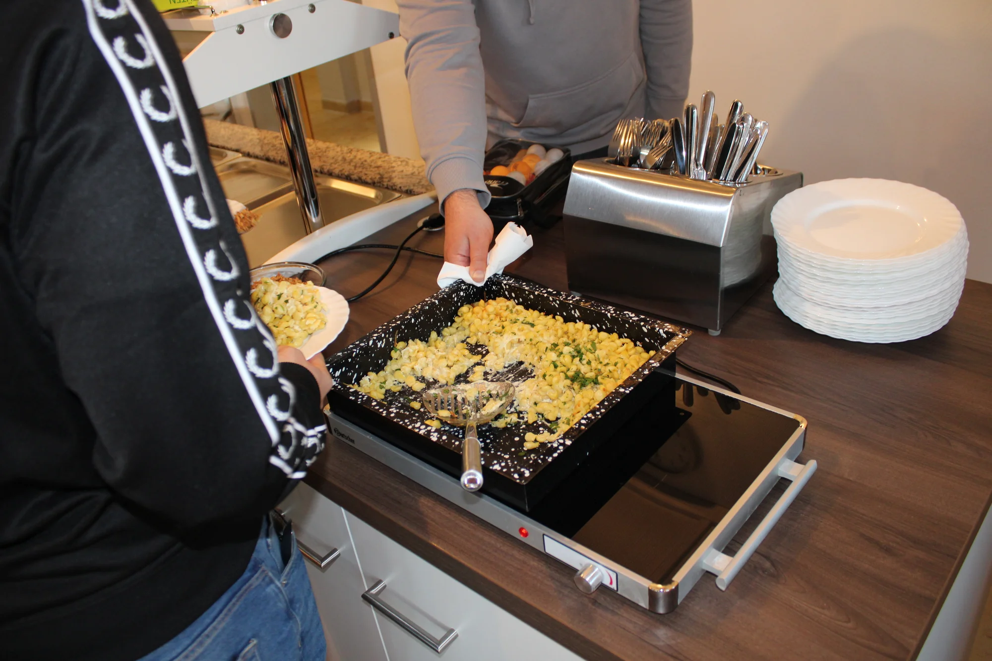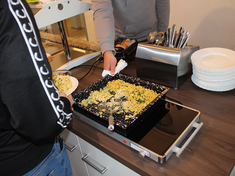 Unsere hauseigene Küche ist das Herzstück des Wohnheims und bietet täglich frisch zubereitete, deftige und ausgewogene Mahlzeiten. Unser erfahrenes Küchenteam legt großen Wert auf: